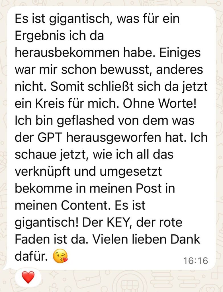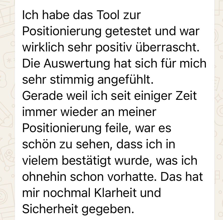 Du erkennst in wenigen Minuten : „Ah. Genau deshalb funktioniert DAS für mich – und anderes nie.“